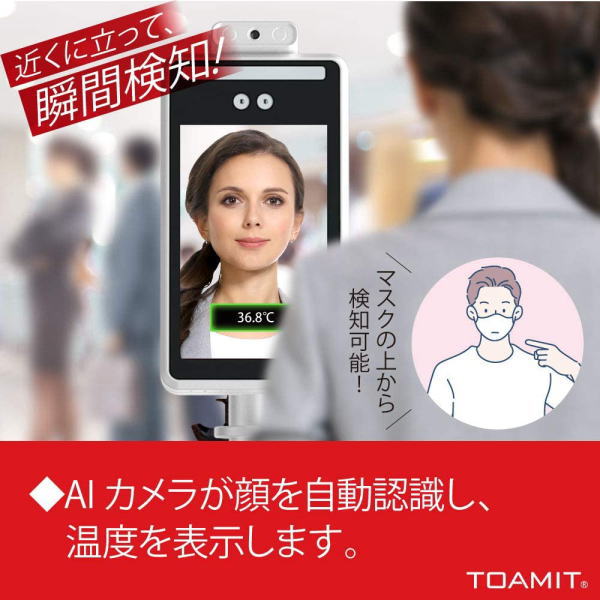 AI(人工知能)により、測定誤差は±0.5℃と高い精度での体表面温度の測定ができます。