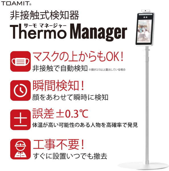 また、あらかじめ設定した以上の温度を検知した場合には、対象者に接触する事なく瞬時に